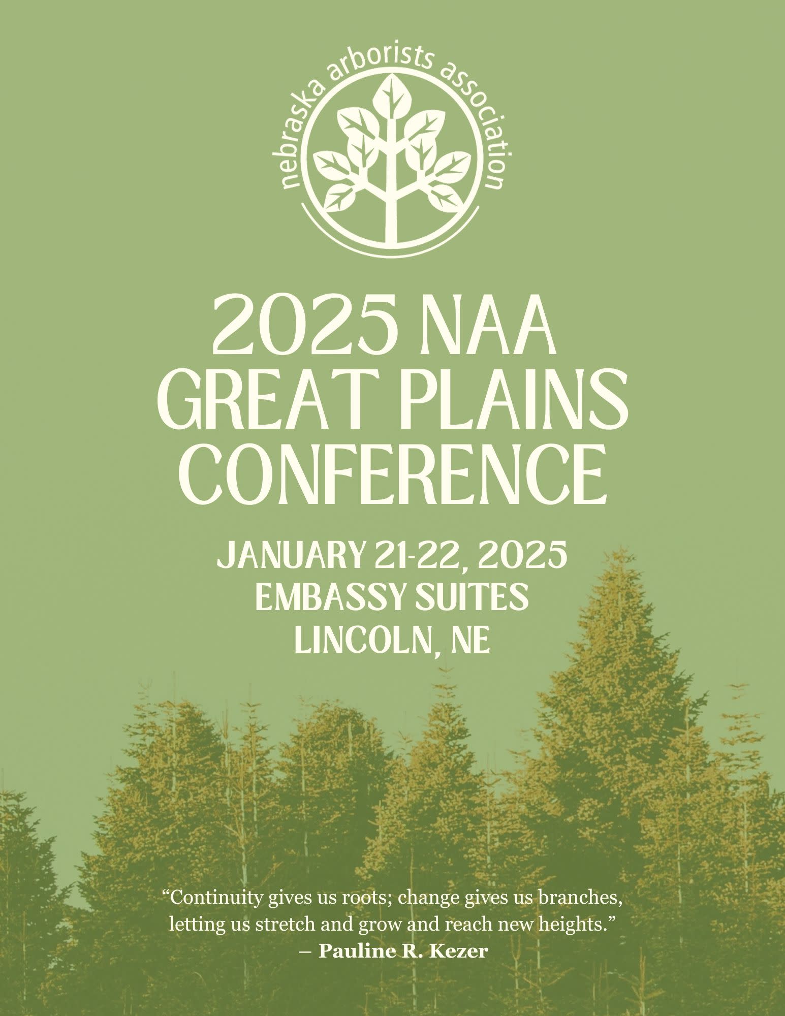 On behalf of the Planning Committee, we are excited for the upcoming 2025 Nebraska GREAT PLAINS Conference, a conference hosted by the Nebraska Arborists Association. The Conference will take place at the Embassy Suites Hotel in Lincoln, NE, on January 21-22. Specific vendor times have been built into the schedule to facilitate increased traffic to vendor booths. We hope your company will consider being an exhibitor and/or sponsor this year. We hope to see you at the 2025 Nebraska GREAT PLAINS Conference on January 21-22!